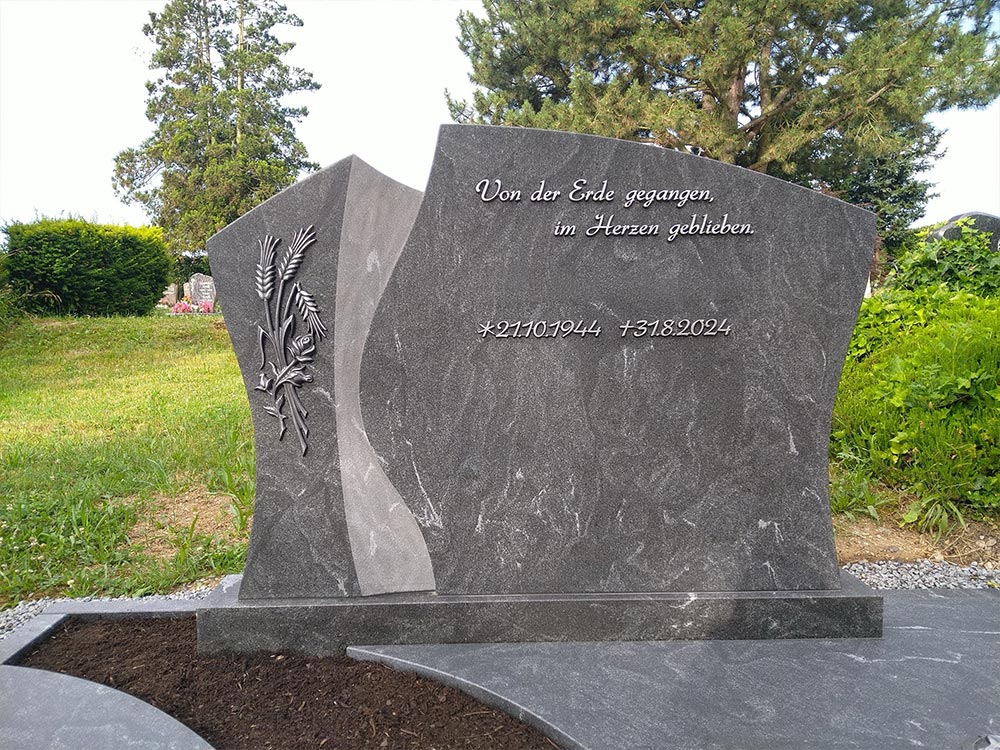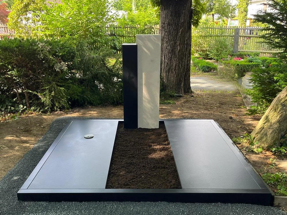 Eine besonders beliebte Form sind zweiteilige Doppelgrabmale, die aus zwei klar voneinander getrennten, aber harmonisch aufeinander abgestimmten Elementen bestehen. Diese können auch aus unterschiedlichen Steinarten gefertigt werden. Solche Lösungen verbinden individuelle Gestaltung mit gemeinsamer Wirkung und stellen eine sinnvolle Alternative zu klassischen Einzelgrabmalen dar.