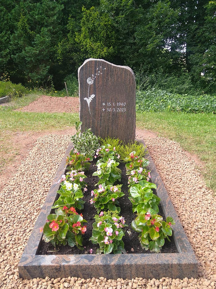 Wir verstehen, dass jedes Einzelgrabmal eine sehr persönliche Geschichte erzählen soll. Daher nehmen wir uns Zeit für Ihre Vorstellungen und begleiten Sie von der ersten Idee bis zur fertigen Aufstellung auf dem Friedhof Ihrer Wahl in der Region.