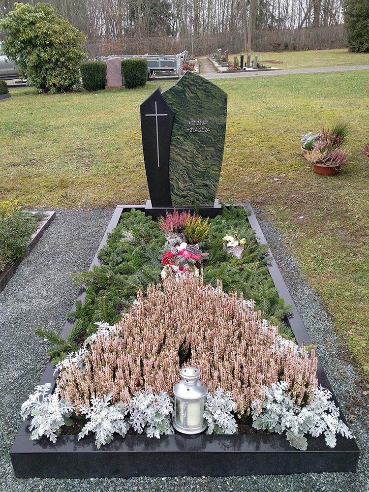 Ein Einzelgrabmal aus Naturstein ist eine dauerhafte Investition, die bei richtiger Pflege über Generationen hinweg bestehen bleibt. Wir bieten Ihnen eine umfassende Beratung zur richtigen Pflege Ihres Grabsteins an. Unser Service umfasst auch die professionelle Reinigung, Imprägnierung und Aufarbeitung der Steinoberfläche. Sollte nach vielen Jahren eine Nachgravur notwendig werden, sind wir ebenfalls Ihr kompetenter Ansprechpartner. Wenn es um die fachgerechte Aufarbeitung und den Erhalt bestehender Grabmale geht, ist unsere Restaurierung eine gute Anlaufstelle. Mit unserer Expertise stellen Sie sicher, dass das Einzelgrabmal als würdiger und gepflegter Ort der Erinnerung erhalten bleibt.