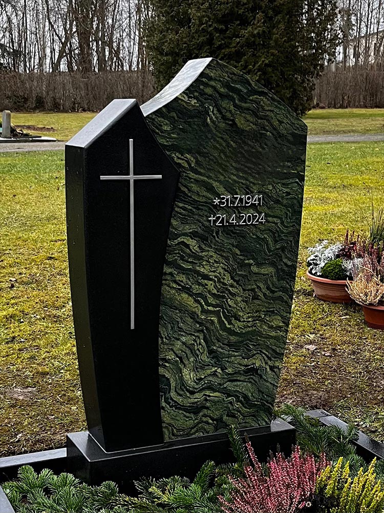 Moderne Einzelgrabmale bieten vielfältige Möglichkeiten, die Persönlichkeit des Verstorbenen in besonderer Weise darzustellen. Wir gestalten abstrakte Formen, asymmetrische Steine oder kombinieren verschiedene Materialien und Oberflächen. Ein moderner Einzelgrabstein kann durch seine besondere Form, eine ungewöhnliche Farbkombination oder die Integration von persönlichen Symbolen die Einmaligkeit des Menschen betonen. Wir realisieren auch individuelle Wünsche wie die Einarbeitung von Foto-Keramik oder metallenen Applikationen.