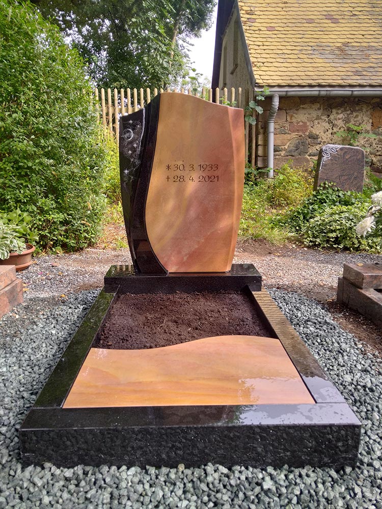 modernes Urnengrabmal mit mehreren Natursteinarten