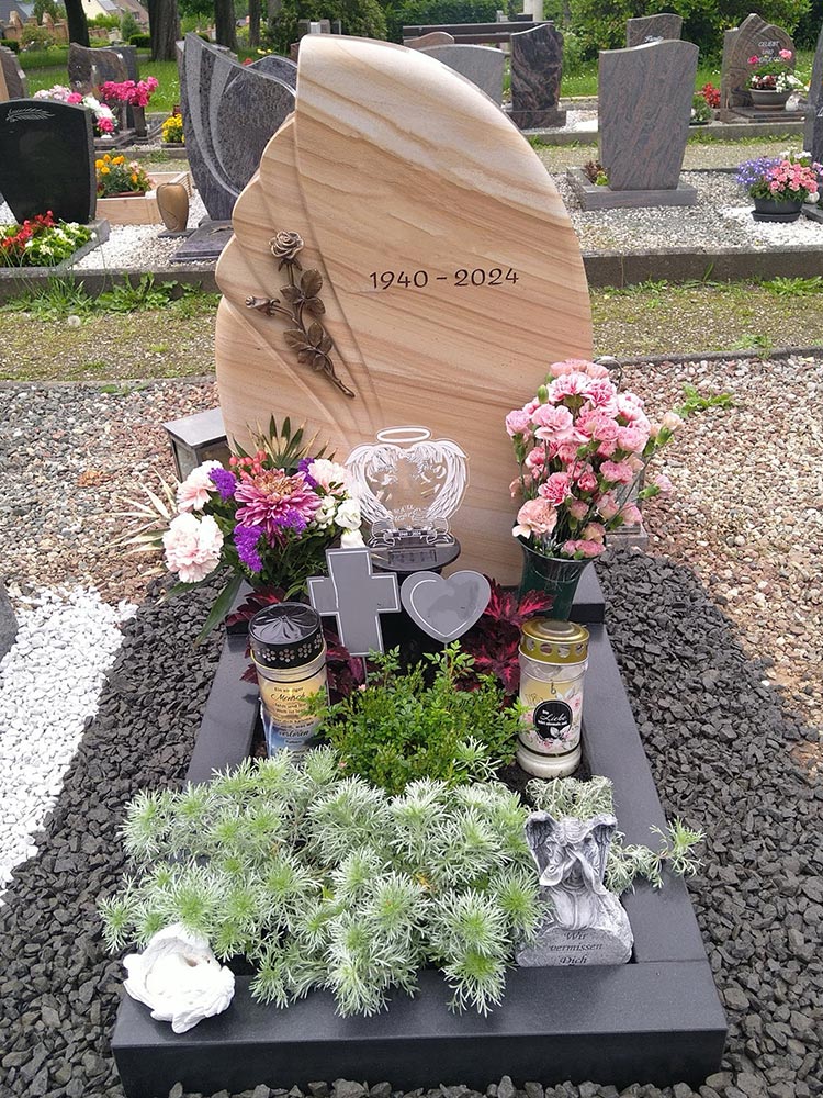 Wir übernehmen für Sie die komplette Abwicklung der Friedhofsformalitäten und die termingerechte Aufstellung des Urnengrabmals. Wir kennen die Satzungen der Friedhöfe in Werdau, Zwickau, Crimmitschau und der Umgebung und achten auf die Einhaltung der örtlichen Vorschriften bezüglich Größe und Material. Die fachgerechte und sichere Fundamentierung sowie die Montage des Grabsteins erfolgen durch unser erfahrenes Team. So haben Sie die Gewissheit, dass alles seine Ordnung hat.